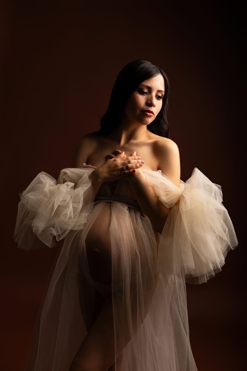 Este cuerpo que ves ahora, esta forma, esta piel que ya reconoce a alguien que todavía no ha nacido — no va a durar. Y merece ser fotografiado de una forma que te emocione dentro de veinte años.